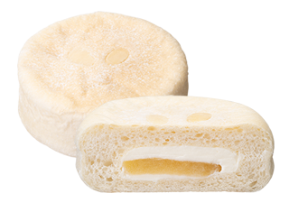 レアチーズペーストとりんごプレザーブ入りのふんわりもっちりとした食感で白く焼き上げました。