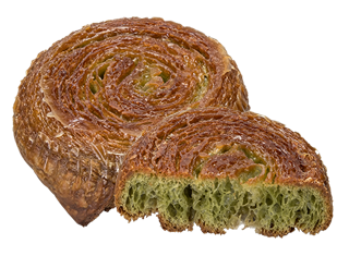 宇治抹茶入りのクロワッサン生地の表面をカリッと焼き上げました。