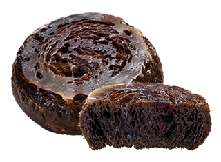 ブラックココアを練り込んだ生地でチョコクリームを包み込み、さらにチョコクリームをトッピングしました。濃厚なチョコの味が楽しめます。