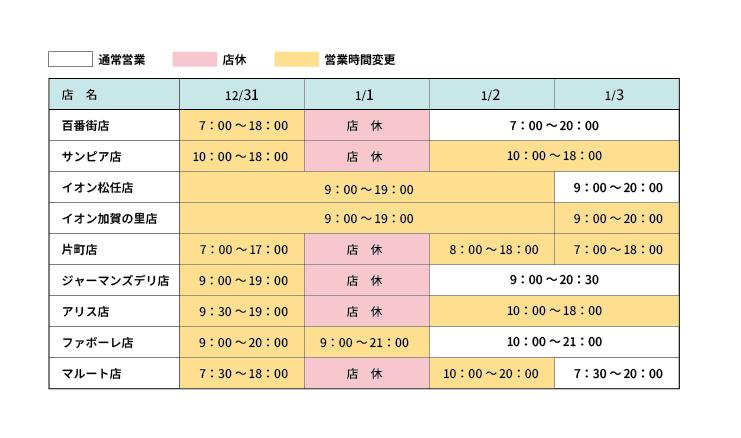 NEWSお知らせ 2025.12.01年末年始 営業時間のお知らせ 平素はジャーマンベーカリー各店をご利用いただきまして誠にありがとうございます。 2025-2026年 年末年始の営業時間をご案内いたします。 皆様のご来店を心よりお待ちしております。 お知らせ一覧へ